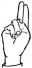 На ћирилици написано АНДРЕЈ ОБУЋИНСКИ састоји се из 15 слова [?]. Исписано ћириличном једноручном азбуком за глувонеме: